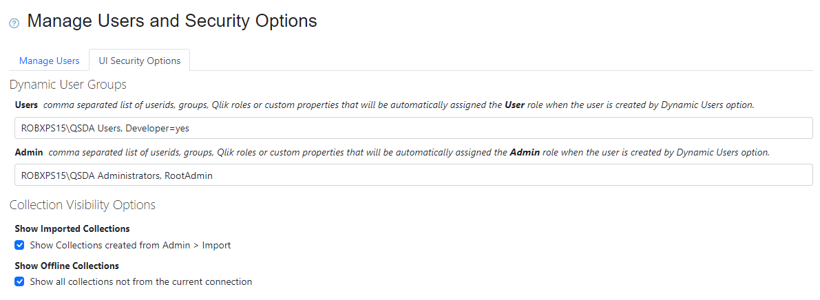 Dynamic User Groups -- When "Dynamic Users" is active, QSDA automatically assigns the associated role to userids who belong to the listed name(s).