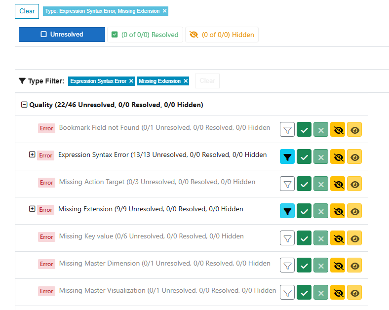 Unresolved flags always appear in the grid. Resolved and Hidden flags appear only when you activate the respective