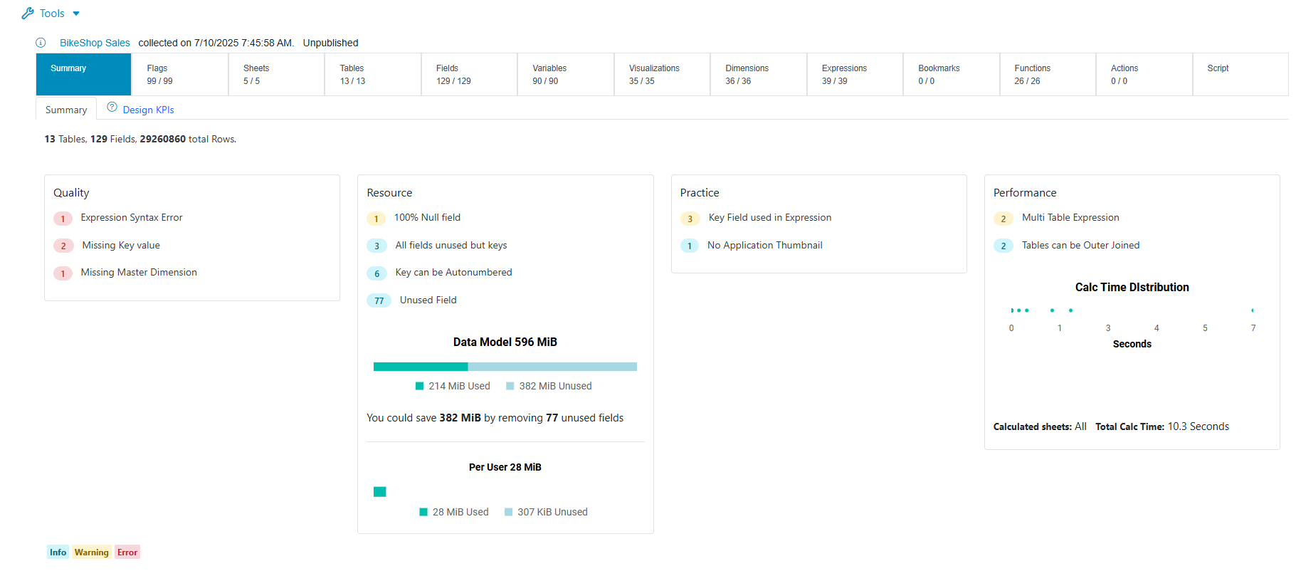 The Summary page provides an overview of the analysis and serves as the landing page.
