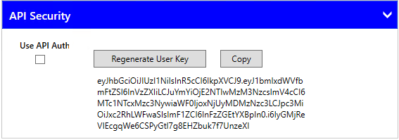 Use API Auth When checked, QSDA API calls require Bearer Authentication using the displayed token. The API accepts only the User Key value shown.