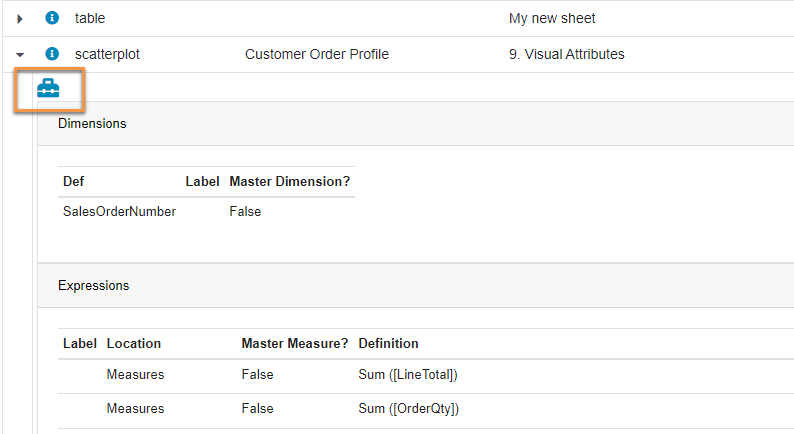 On the Viz page, Click the icon in the expansion section of a Viz to display the Viz Deconstruction dialog.